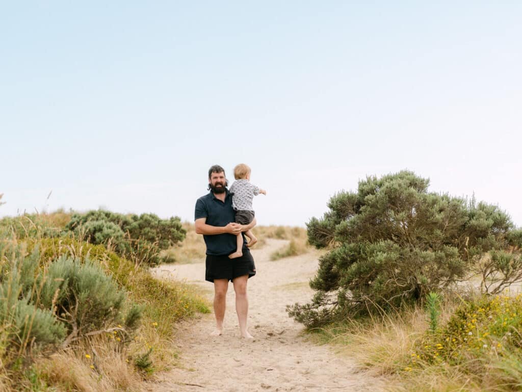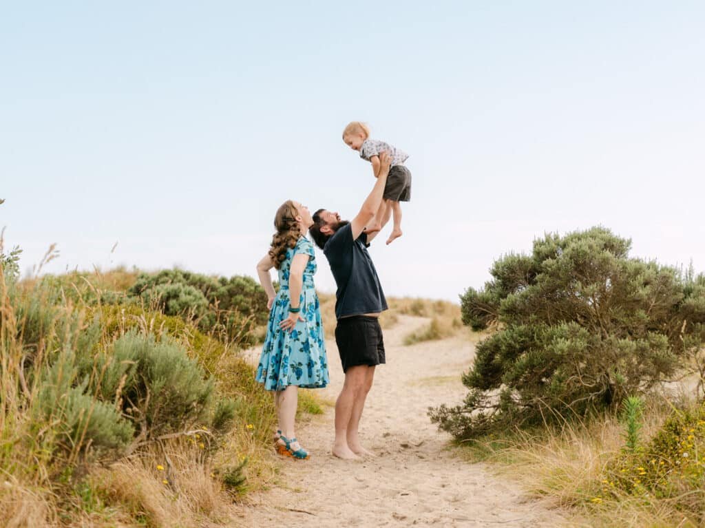 We started in the dunes above the beach where the light was soft, and the long grass gave us something to work with. A few calm shots of the three of them, a couple of Helen and Alex together while Will did his own thing nearby. These are the photos that end up on the wall.