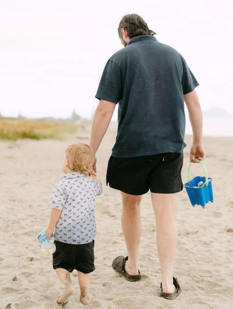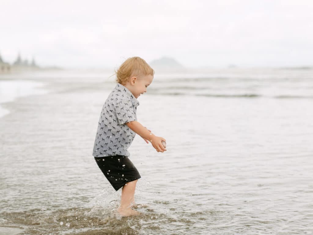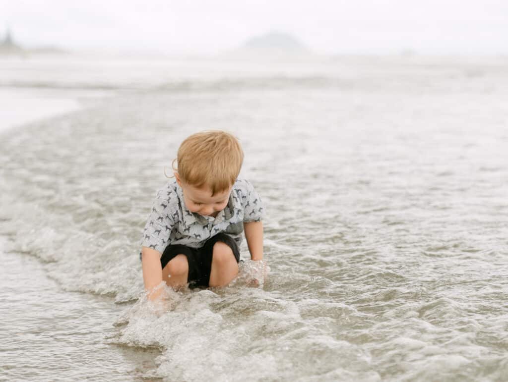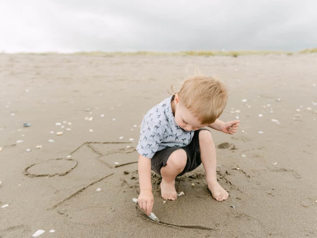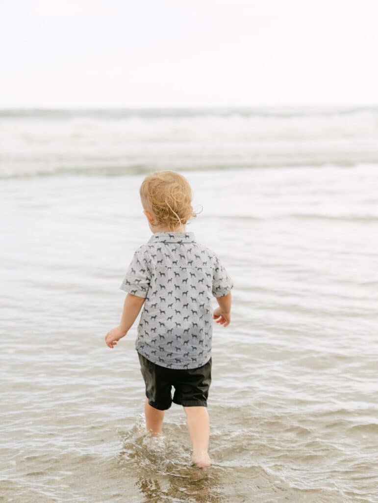 Then we went down to the sand and let Will take over. He built sandcastles, ran in circles, and eventually ended up sitting in the water fully clothed. That’s how it goes with toddlers, and those are the photos that make people laugh every time they see them.