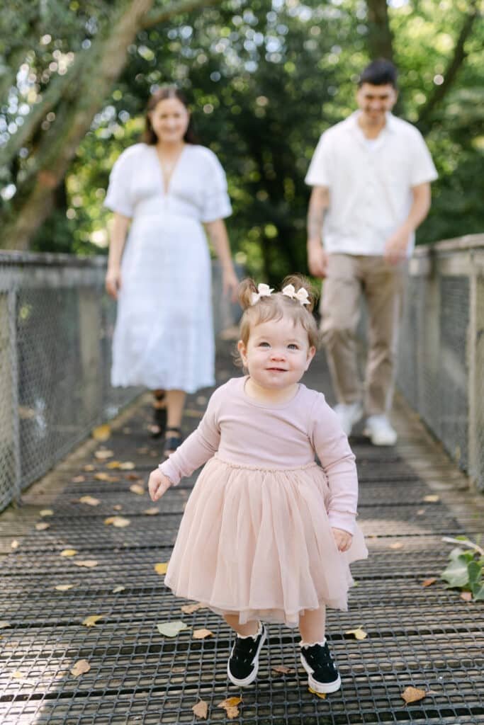 Some sessions feel like you are photographing a milestone. Holly and Jacob met me at Taitua Arboretum with their little girl, Lolla, for a simple plan with a big payoff.