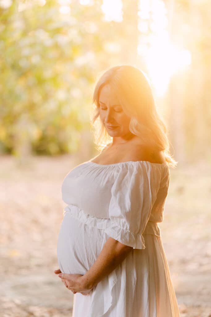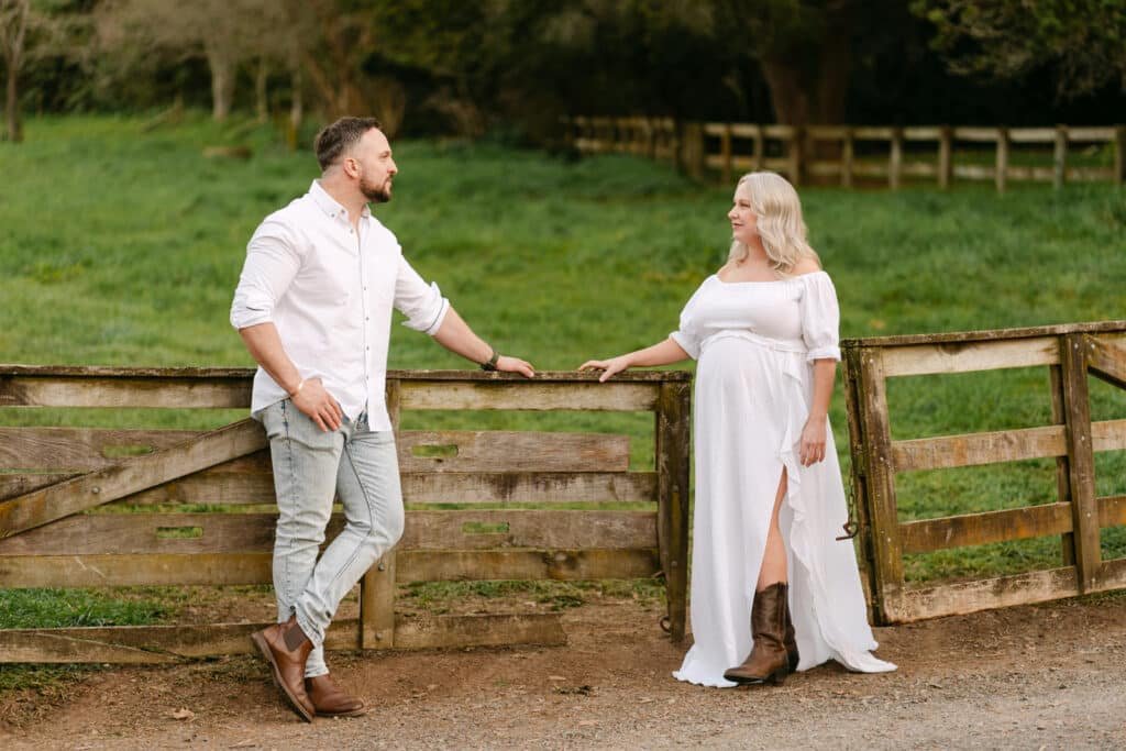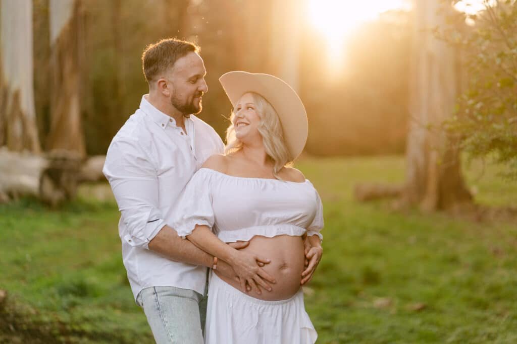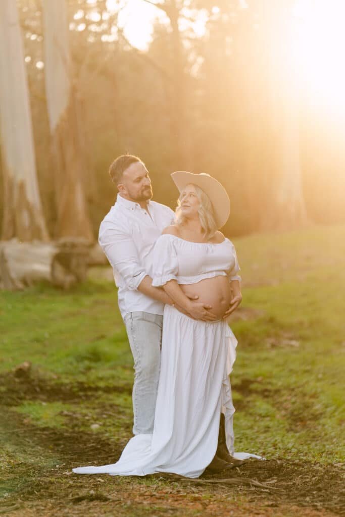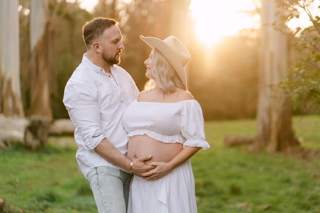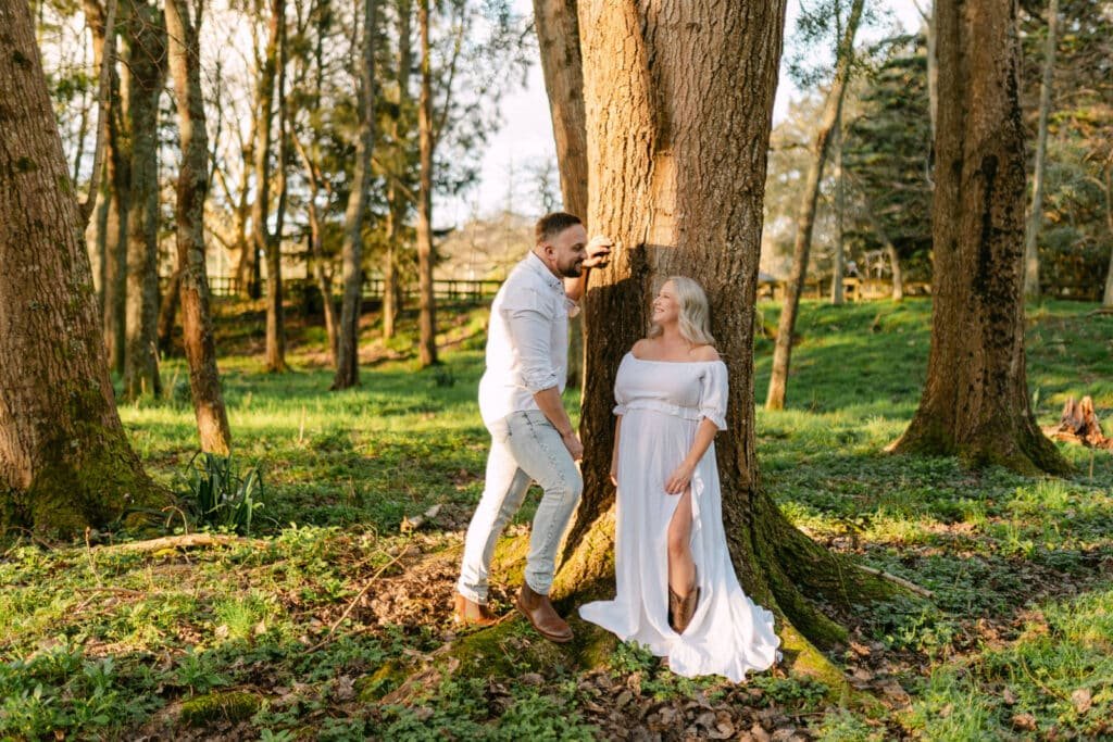 Melissa and Mike’s maternity shoot took place at one of Hamilton’s least known, but most beautiful spots for photoshoots, Taitua Arboretum, right at sunset. The golden light filtered through the trees, creating the perfect backdrop for a relaxed and personal session.