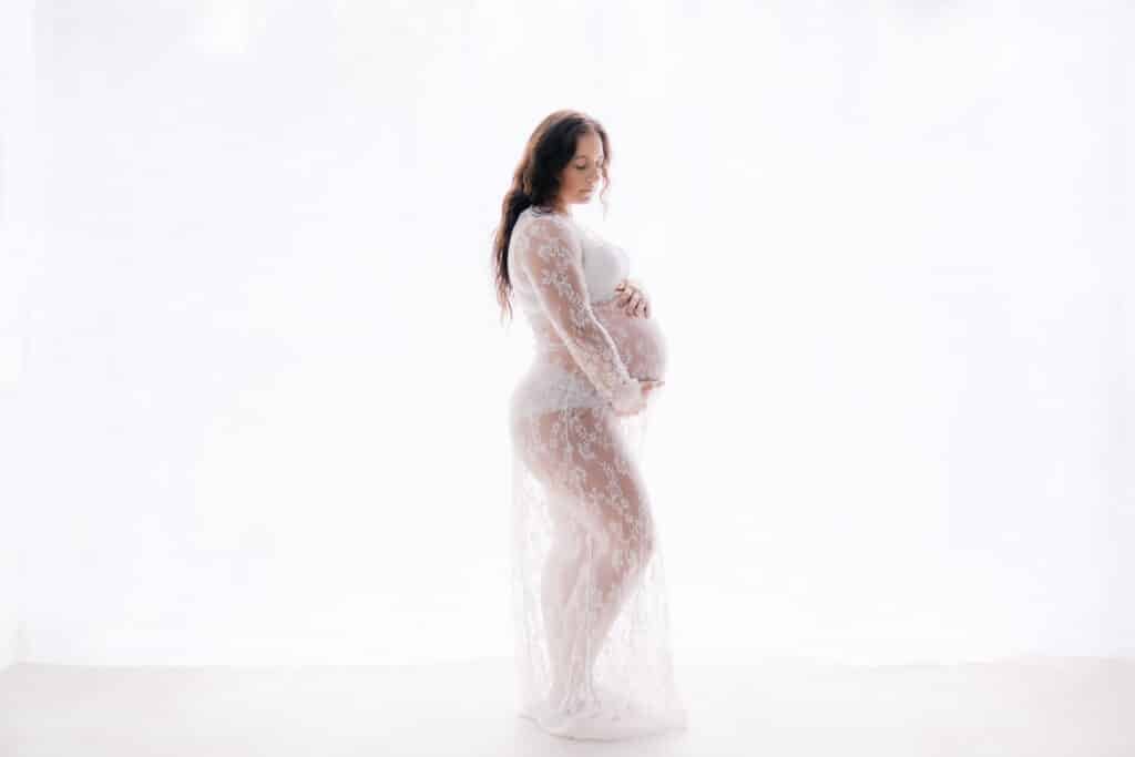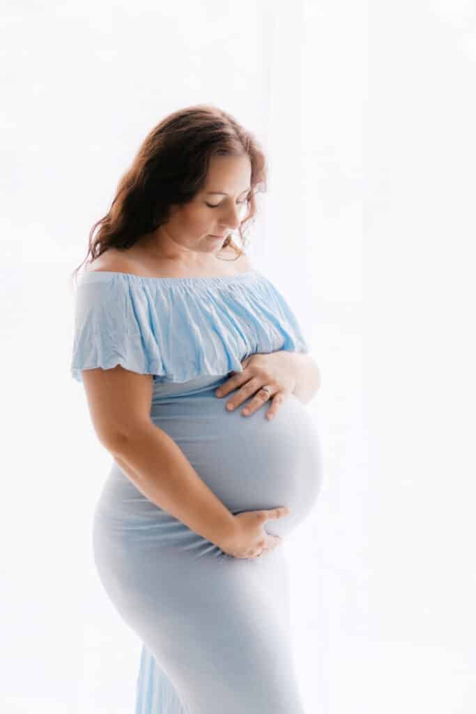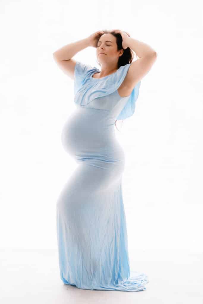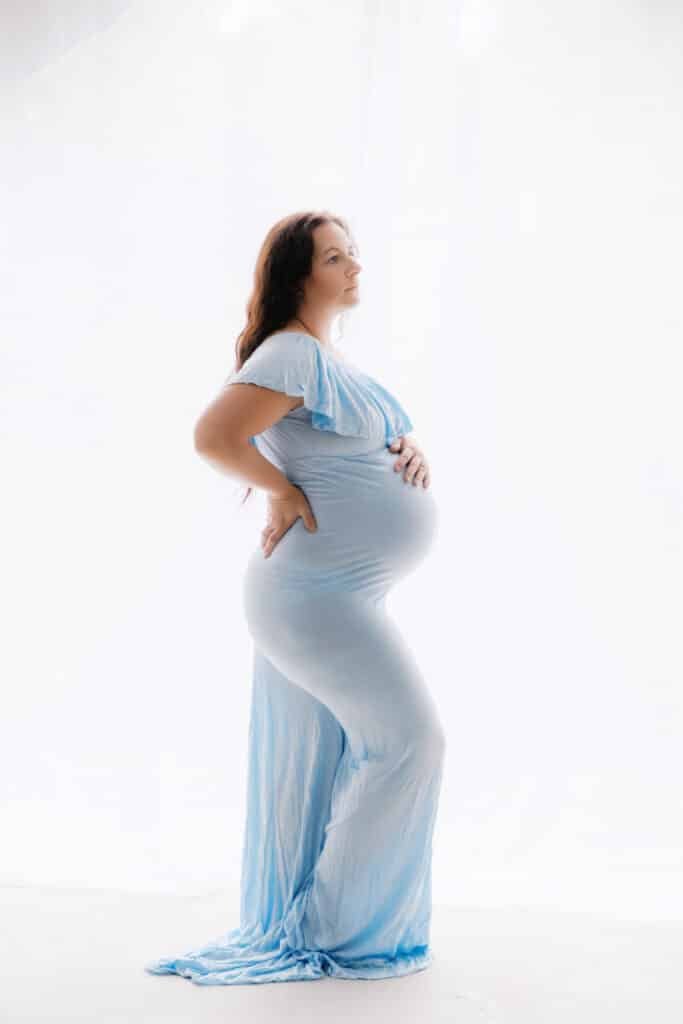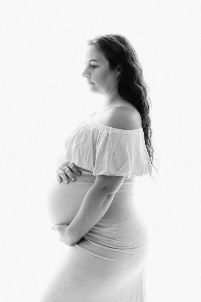The studio was the clear winner for Sarah. High key suits maternity really well when you want the focus on shape, softness, and emotion, without distractions.