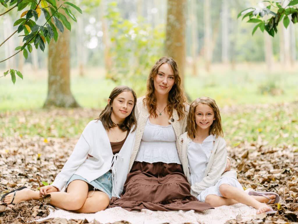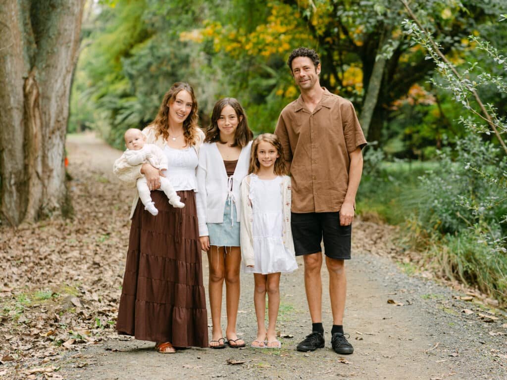 Baby Elva is twelve weeks old. This was supposed to be a newborn session at home but life got in the way, so we pushed it out and turned it into a family session at Taitua Arboretum instead. Honestly, I think it worked out great this way. Elva was more alert, the girls could run around, and we had that beautiful autumn light coming through the trees.