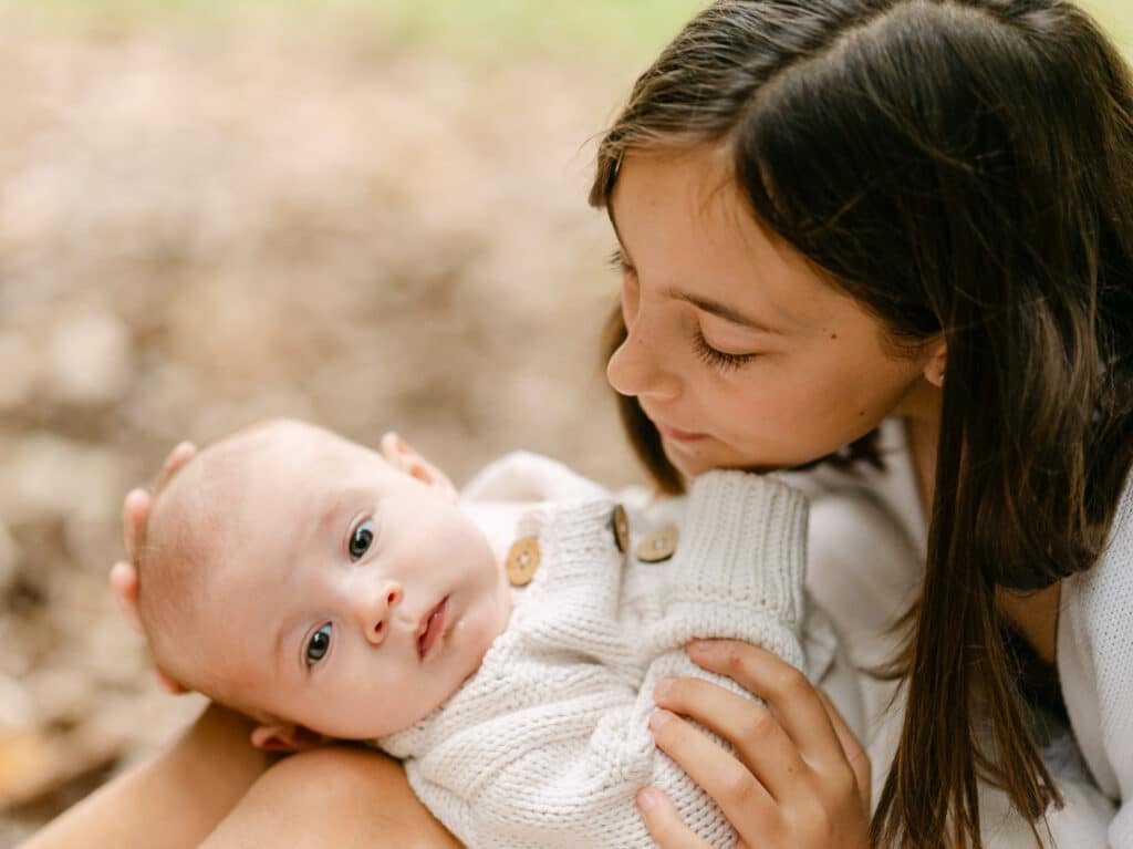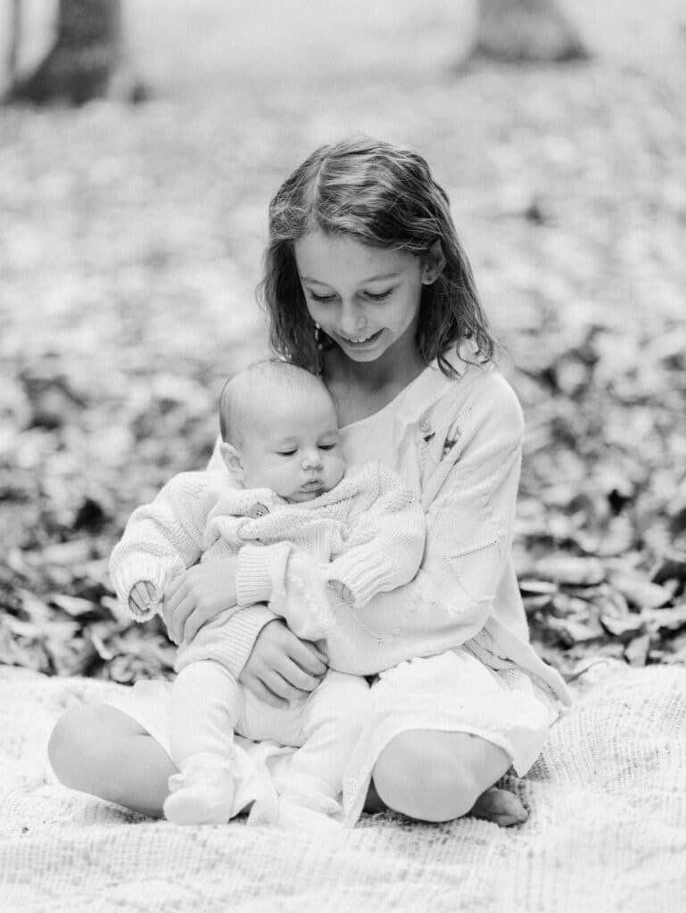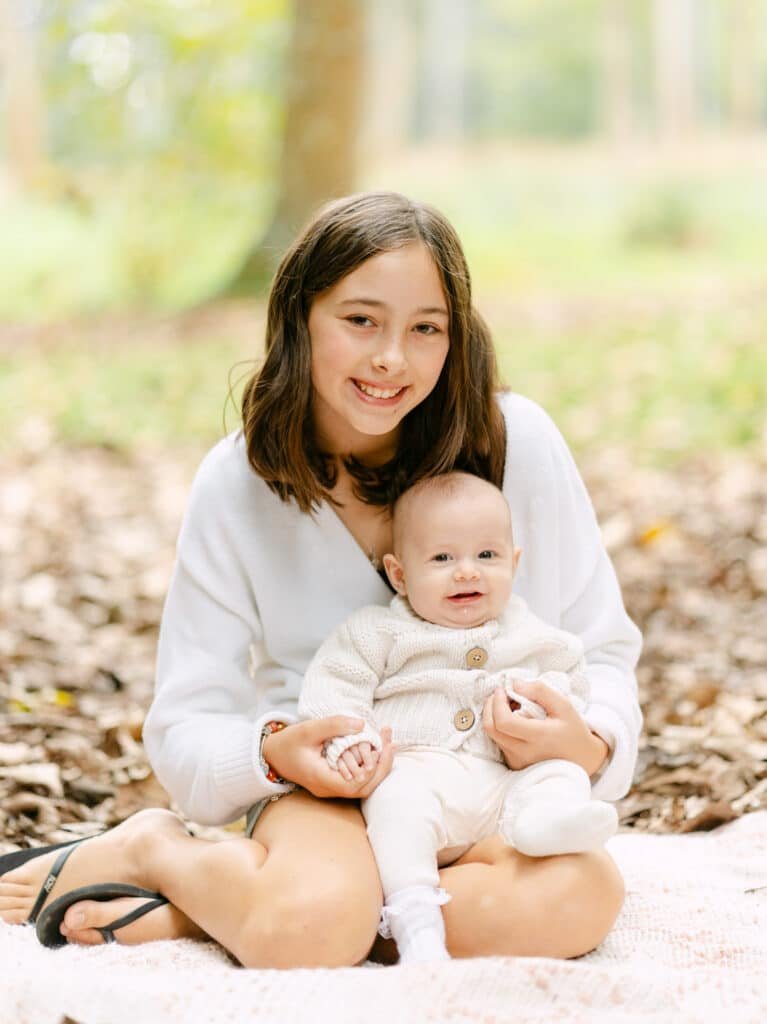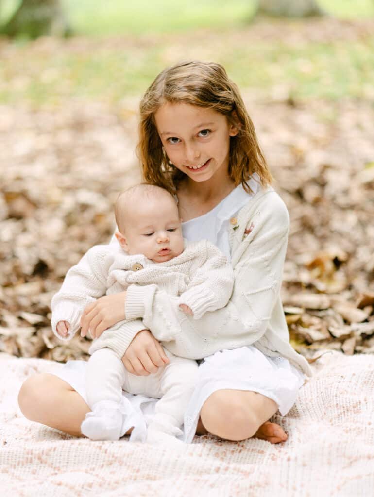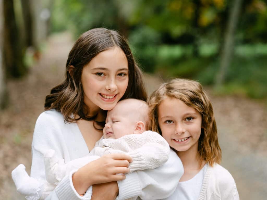 Aubree is twelve now and Esther is eight, and they were both incredible in front of the camera. Natural, enthusiastic, completely at ease. You can tell they’ve done this before. They both adore their baby sister and some of my favourite shots from the session are the two of them holding Elva on the blanket, these quiet little moments between siblings that you just can’t manufacture.